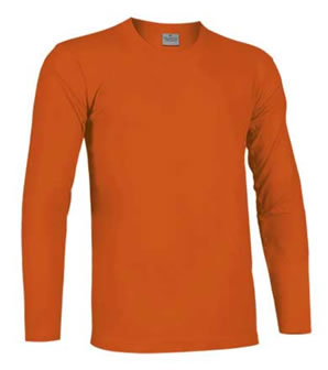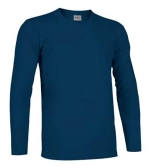 Camiseta de manga larga, confeccionada en tejido de punto liso 100% algodón ring spun. Manga larga recta, sin puño, cuello redondo de canalé, refuerzo de hombro a hombro y doble pespunte en cuello, bajo y mangas. Disponible en un amplio surtido de colores creados con tinte reactivo azo-free. Adecuada tanto para prenda exterior como interior.